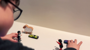 Our second installation invites young visitors to step behind the lens and make their own live-action videos. Here, children learn how live action footage can inform stop-motion storytelling.